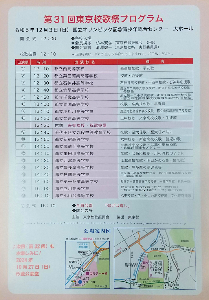 2023年度年度東京校歌祭のご案内
