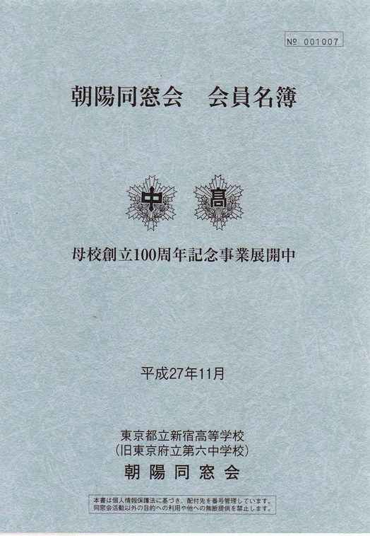 平成23年版以来4年ぶりとなる、平成27年版「朝陽同窓会 会員名簿」がこのほど発行され、予め購入を申し込まれた方々への発送を11月18日(水)、19日(木)の二日間で完了いたしました。