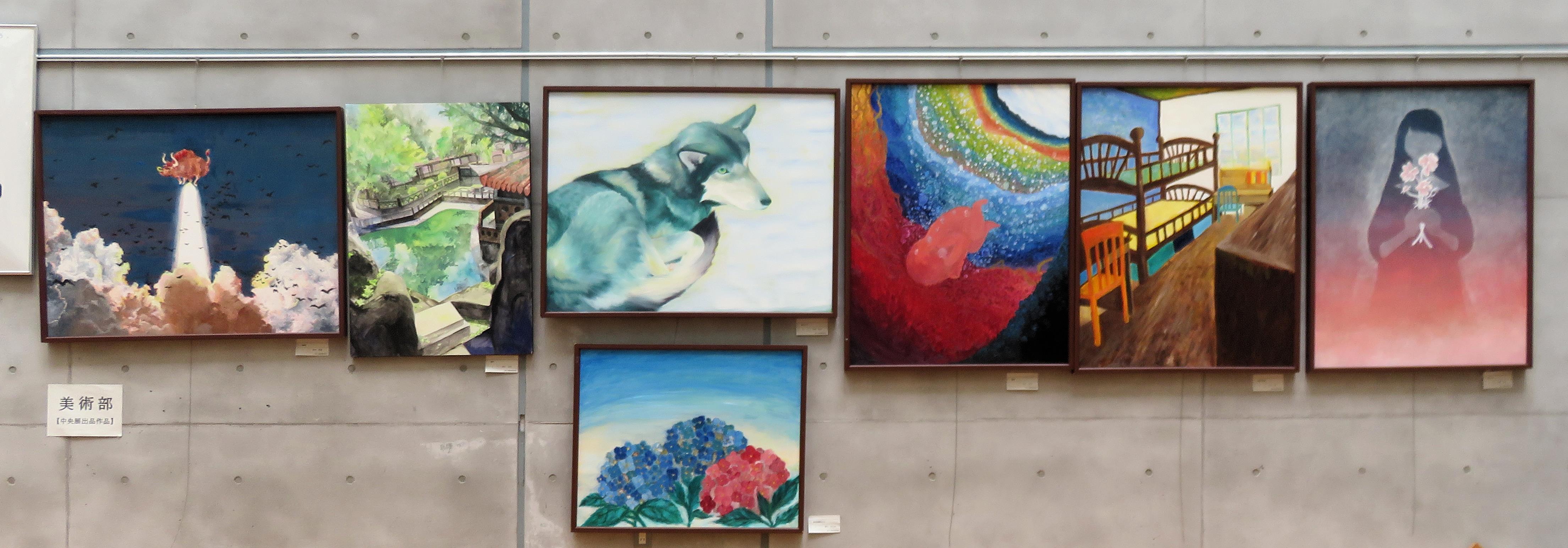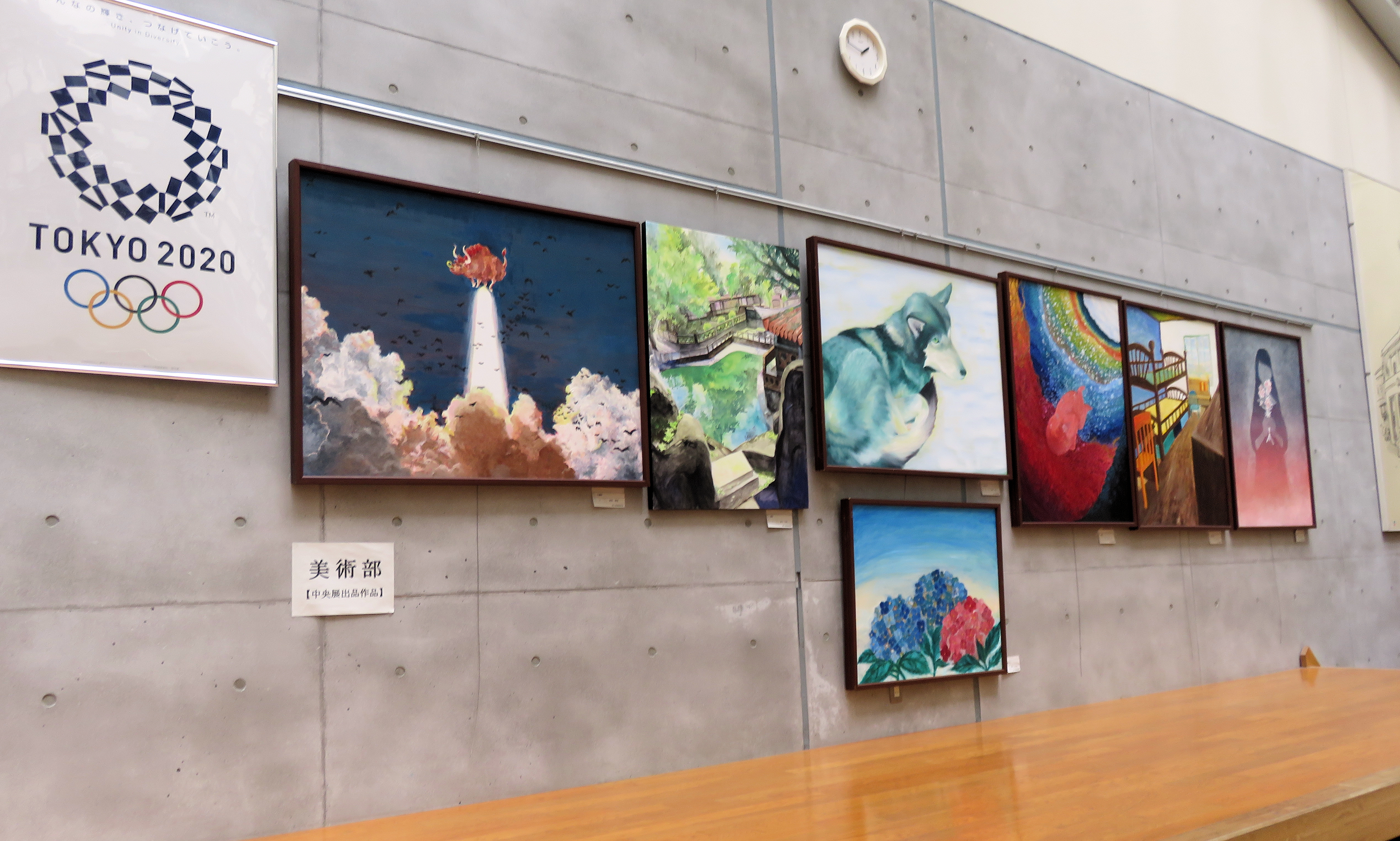 東京都教育委員会 高等学校文化連盟「美術・工芸部門」第27 回中央展に母校美術部員 が出展した作品7 点が、今年もピロティに展示されています。