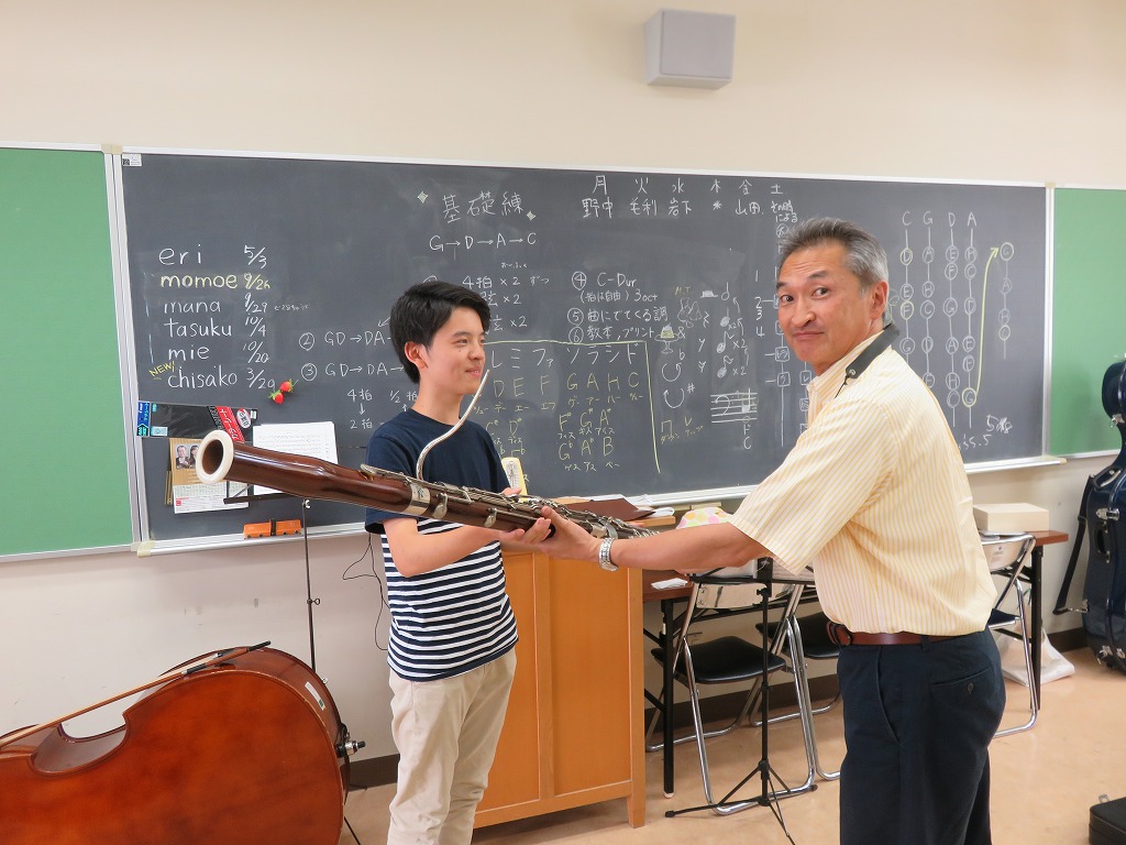 写真の生徒さんは、現役のファゴット担当の管弦楽部員だとのことです。