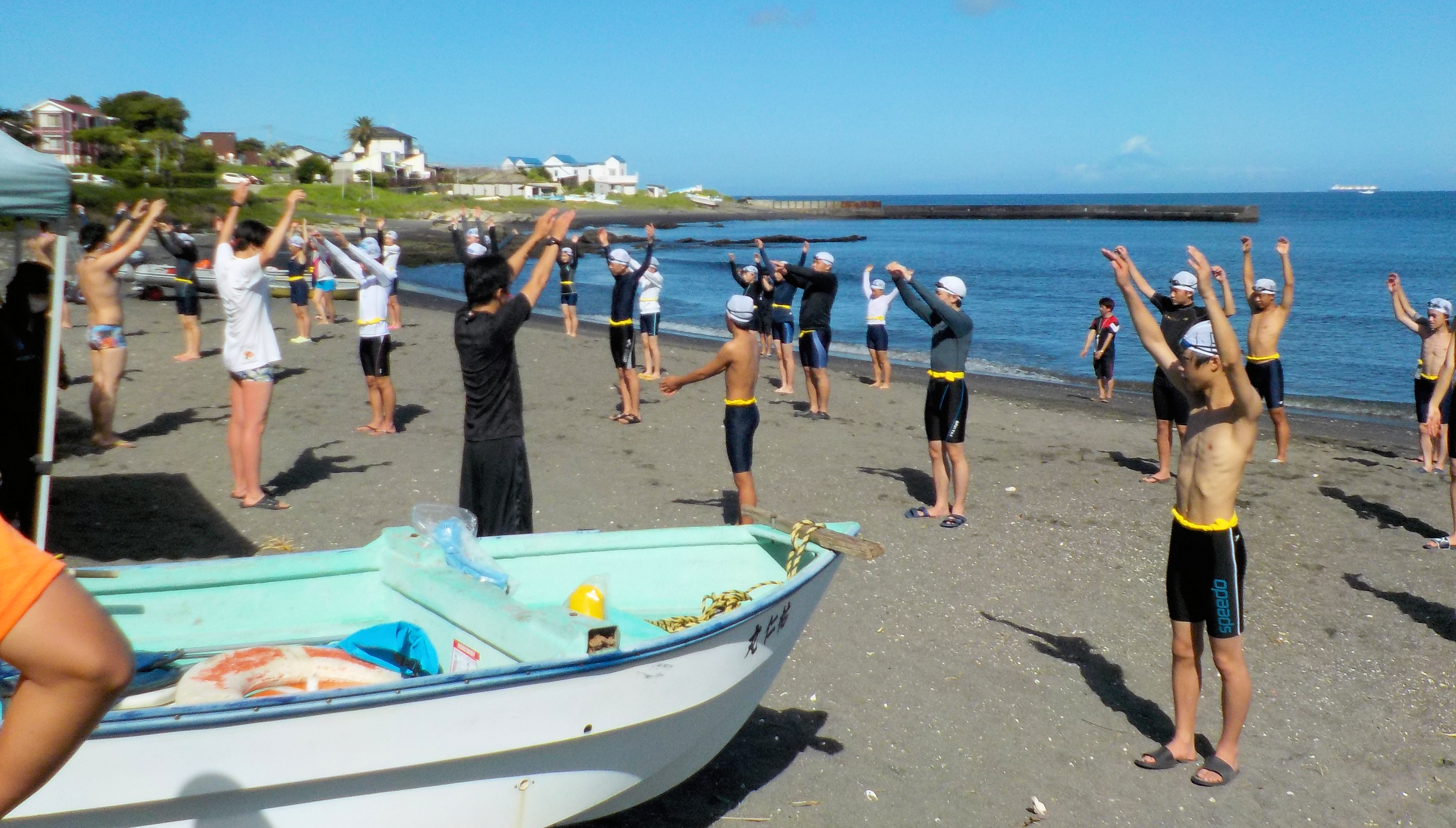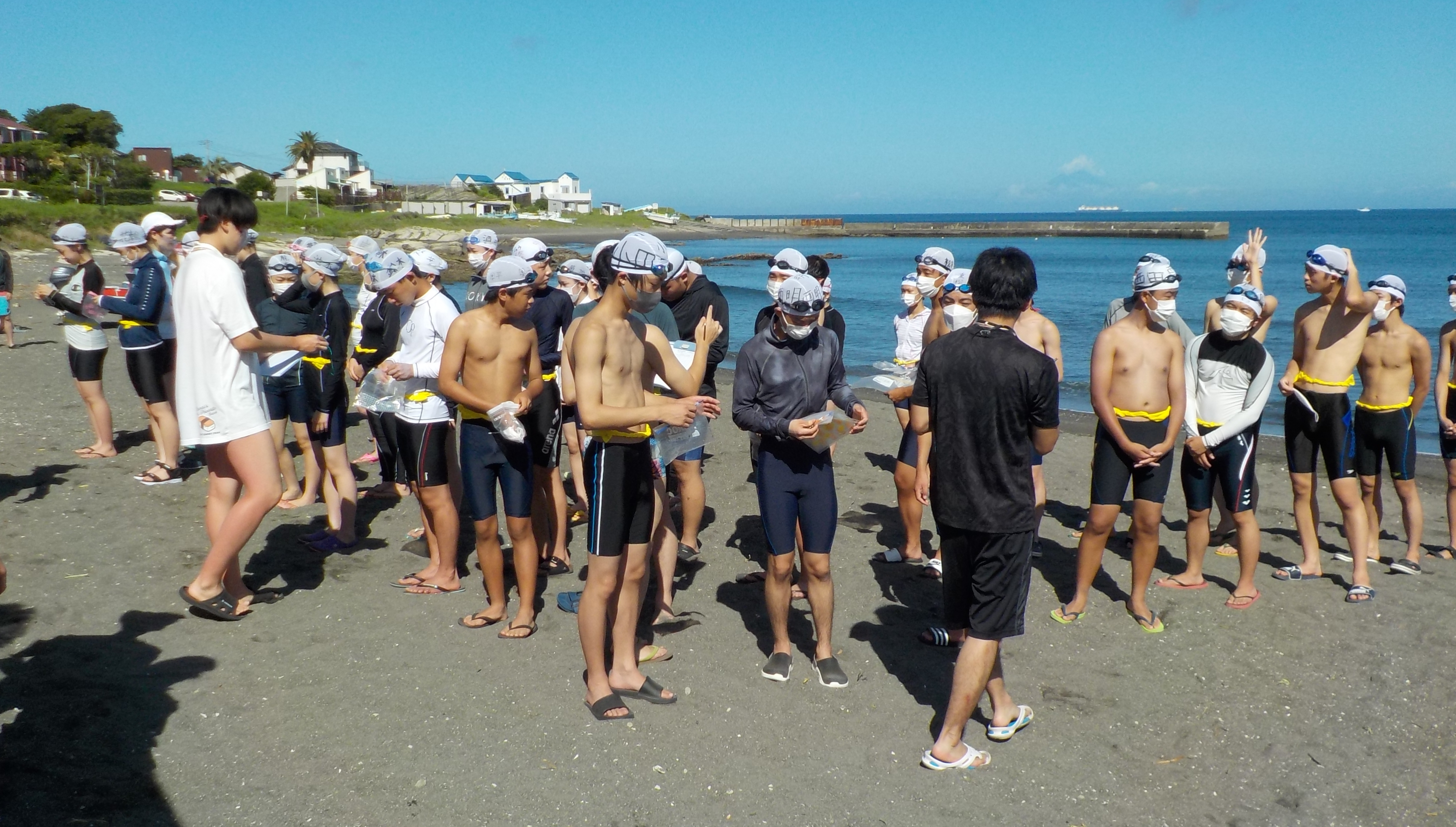 臨海教室実施にあたっては、水泳部OB・OGが多数支援のために駆けつけてくれて、事前準備(清掃、環境整備)や生徒の遠泳サポートにご尽力いただいております。