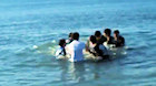 出発後、浜の説明と泳いでる隊列の遠景