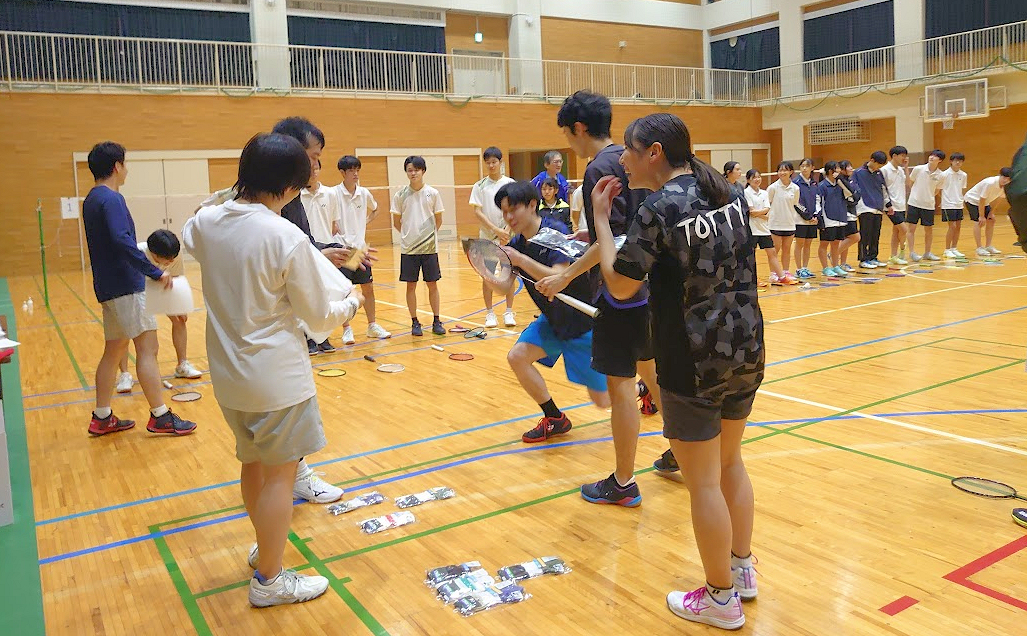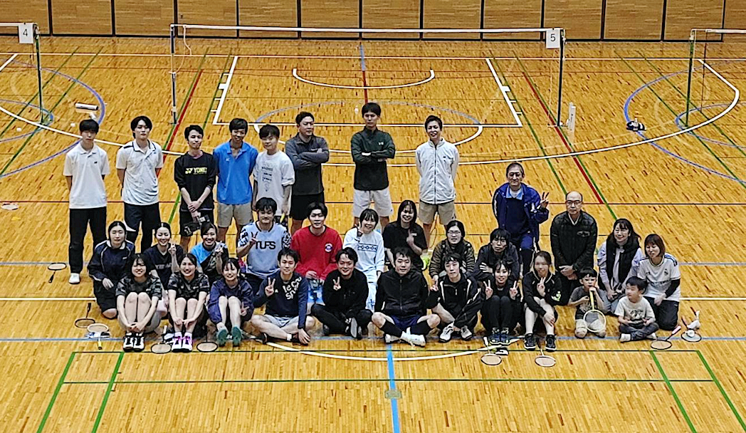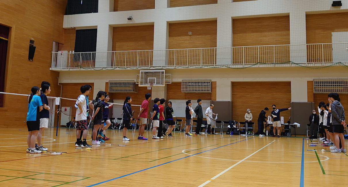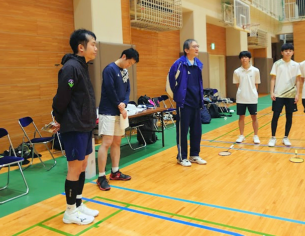 これは、年2回、母校体育館で卒業生同士がバドミントンの交流試合を行うというイベントで、1970年代中盤から続いています。あいにくコロナ禍の3年間は開催されませんでしたが、この度、ようやく復活の運びとなりました。幹事の清水達記さん・梁取祐輔さん(62回生)の尽力と現役の協力のお陰です。