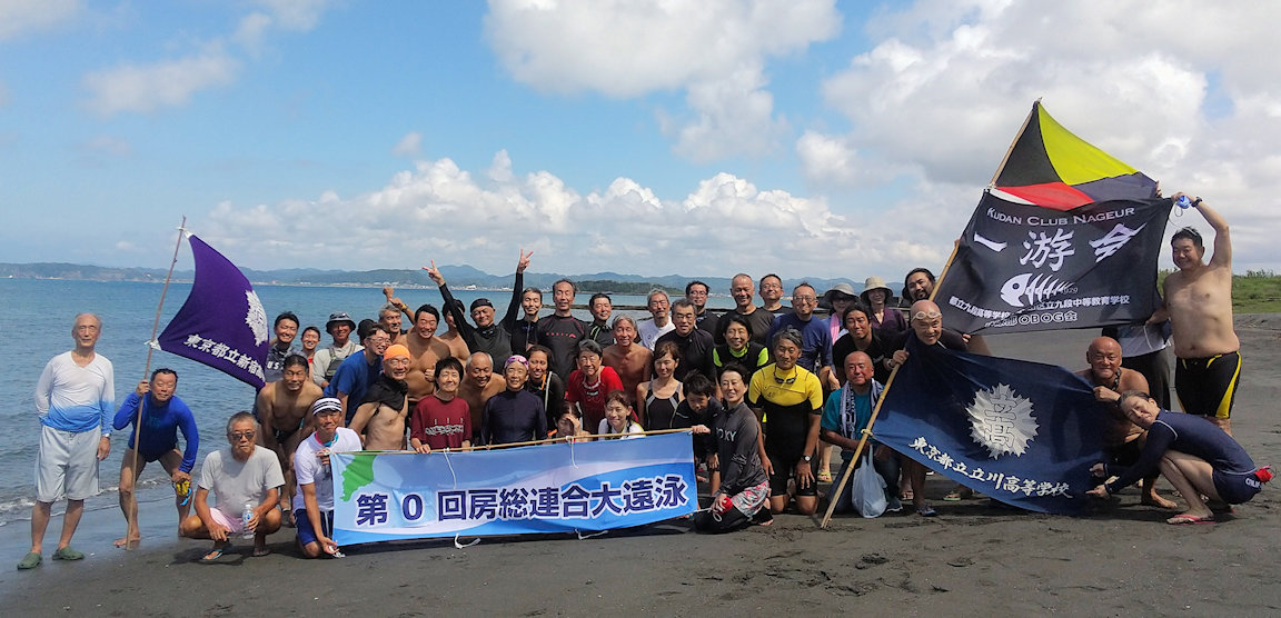 新宿・立川・九段など館山近辺で臨海学校・遠泳をおこなっている学校の卒業生が中心となって、組織した遠泳会の試行大会。