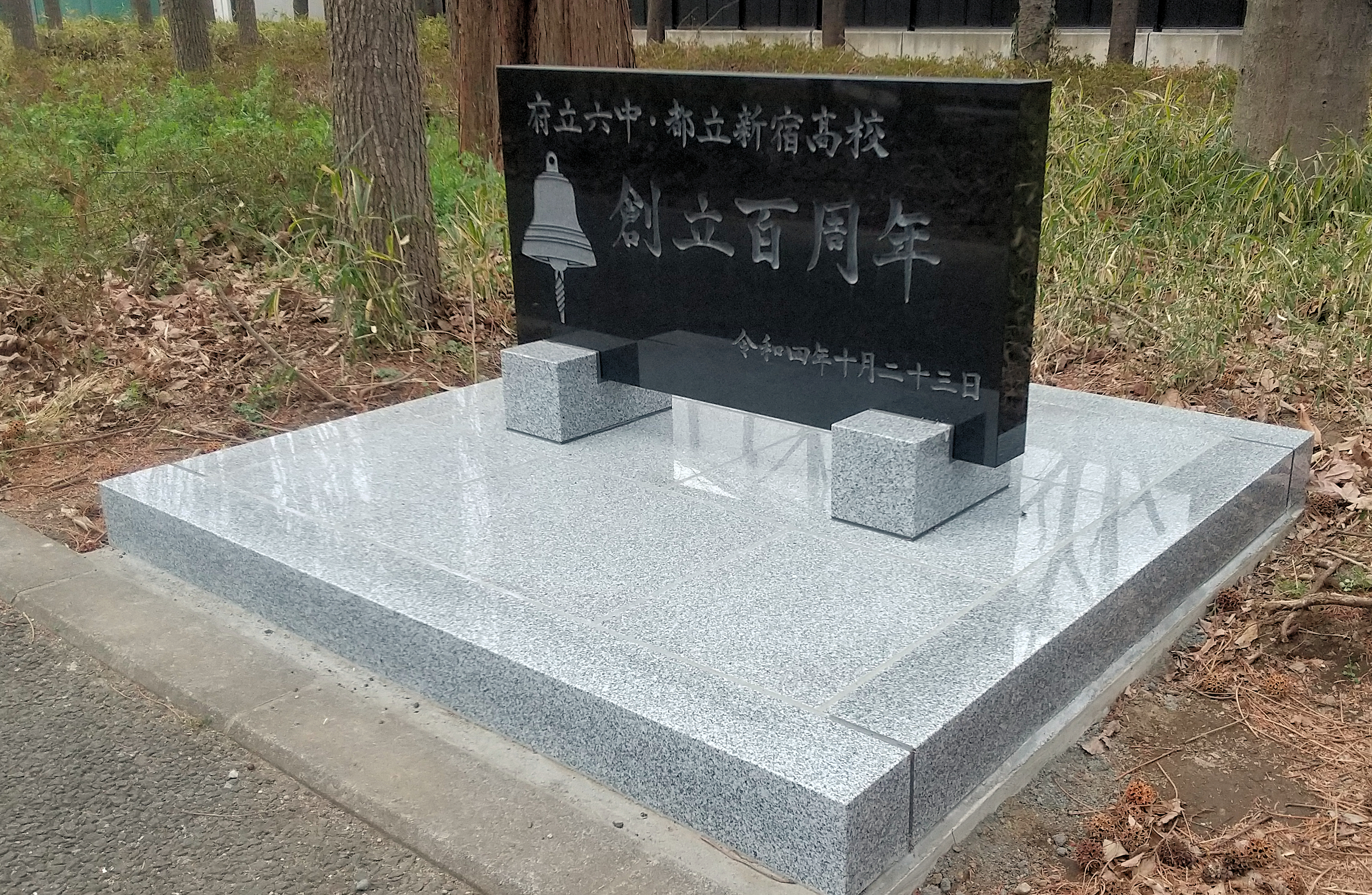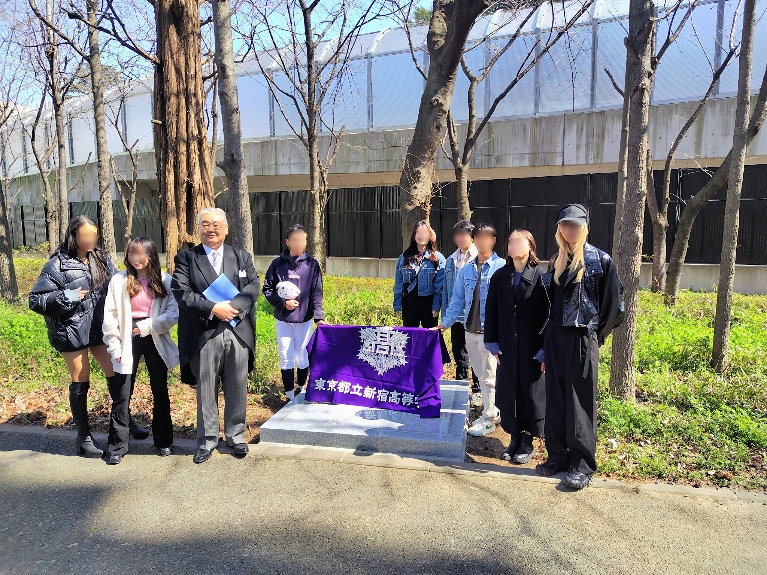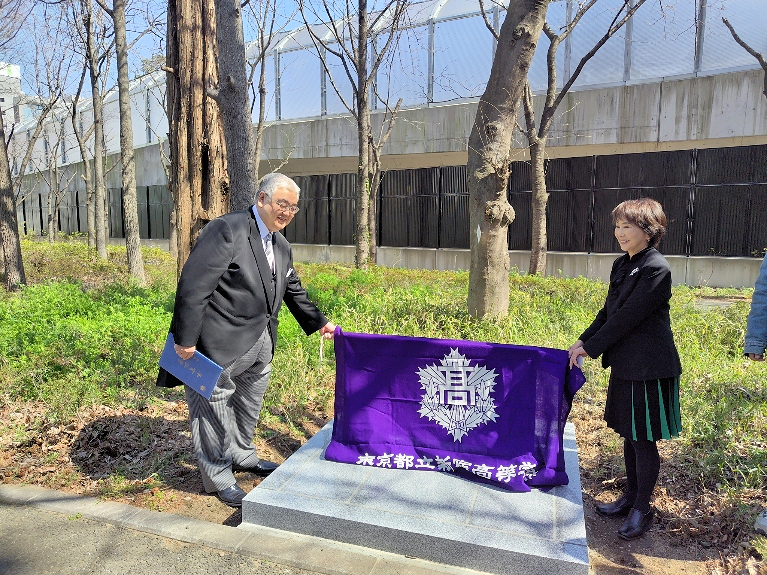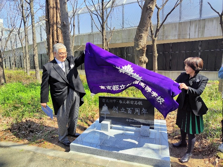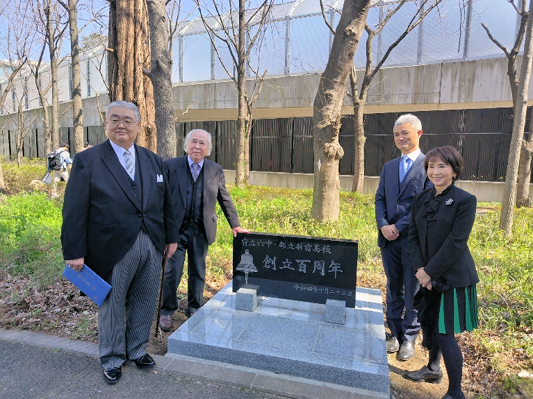 晴天に恵まれた2024年3月15日学校の卒業式に併せて100周年記念庭園の記念碑の除幕式を行いました。