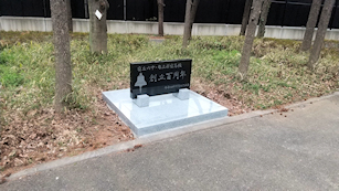 記念碑はテニスコートをグランドに挟まれた三角形の植え込みの中程に設置されています。